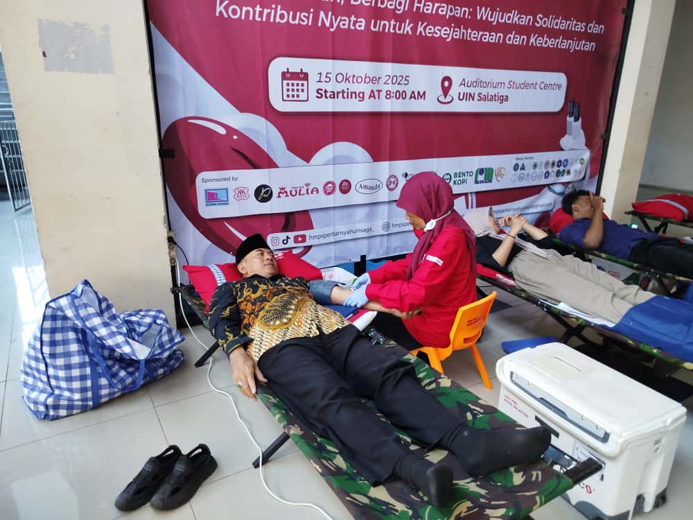 Sebagai bagian dari wujud kepedulian sosial, panitia juga mengadakan kegiatan Donor Darah bekerja sama dengan instansi terkait. Kegiatan ini diikuti oleh mahasiswa, dosen, dan tenaga kependidikan, serta masyarakat sekitar kampus. Dengan terselenggaranya seluruh rangkaian kegiatan tersebut, maka pada pukul 16.00 WIB tanggal 15 Oktober 2025, seluruh agenda Diesnatalis Program Studi Perbankan Syariah FEBI UIN Salatiga Ke-13 Tahun 2025 dinyatakan telah selesai dan berjalan dengan lancar. Berita acara ini dibuat sebagai dokumentasi resmi penyelenggaraan kegiatan.