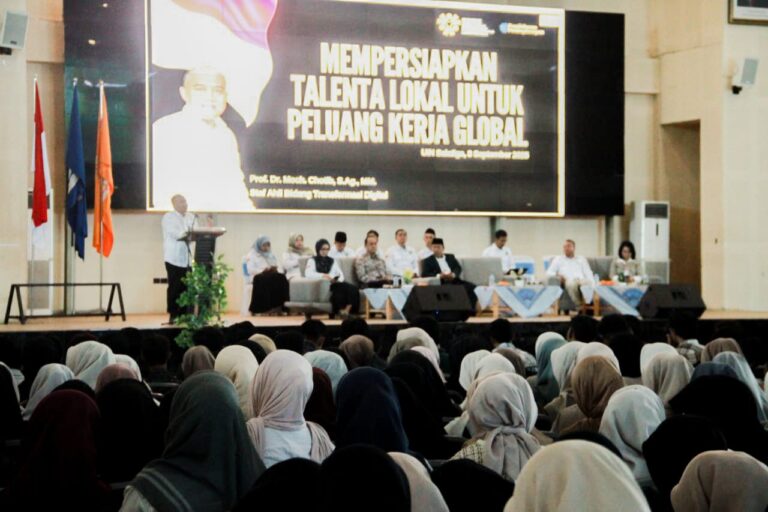 Salatiga, 8 September 2025 – Fakultas Ekonomi dan Bisnis Islam (FEBI) UIN Salatiga menyelenggarakan Stadium General bagi mahasiswa baru Tahun Akademik 2025/2026 di Auditorium Student Center, Gedung Prof. Dr. H. Achmadi, UIN Salatiga. Kegiatan ini mengusung tema “Transformasi Digital dan Kolaborasi Triple Helix: Mempersiapkan Talenta Lokal untuk Peluang Kerja Global” dan diikuti oleh 774 mahasiswa baru FEBI.